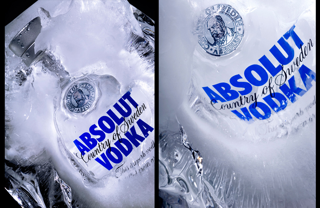 Imagen conseguida mediante congelación de la botella Absolut Vodka para el Grupo Absolut, por el fotógrafo profesional Gregorio Reche.